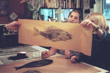 Members and guests dined alfresco on a sumptuous potluck, and experimented with Gyotaku, Japanese Fish Printing, using a real, redolent, and not rubber, fish provided by Gail Watson.